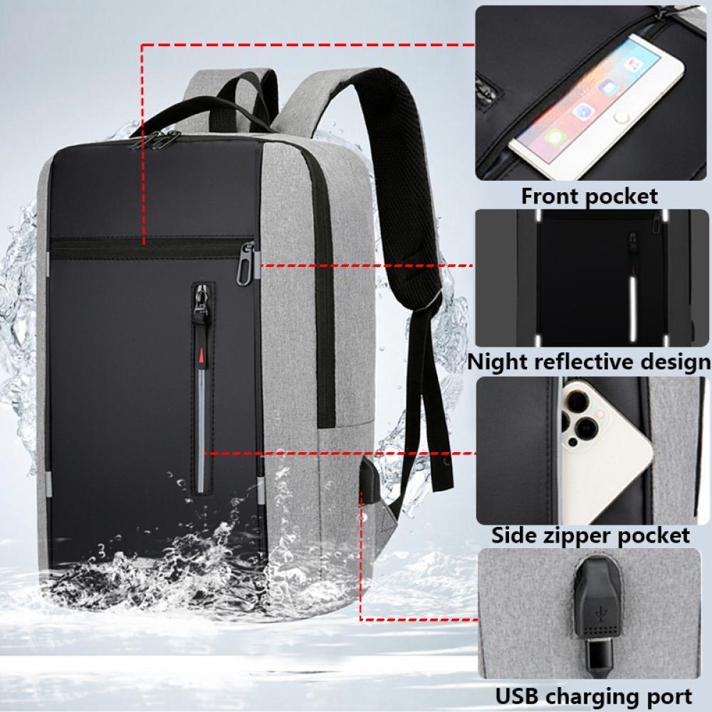 - مميزات حقيبة ظهر أنيقة وعملية مقاومة للماء، مزودة بمنفذ شحن USB: