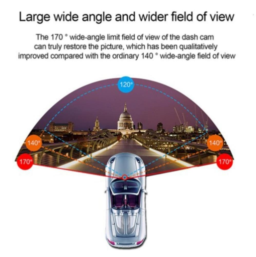 كاميرا داش مزدوجة تركب بسهولة في بولاعة السيارة، توفر تسجيل فيديو عالي الدقة 1080P مع زاوية رؤية عريضة 270 درجة. تعمل كمرآة للرؤية الخلفية وتدعم بطاقة TF حتى 32 جيجابايت.