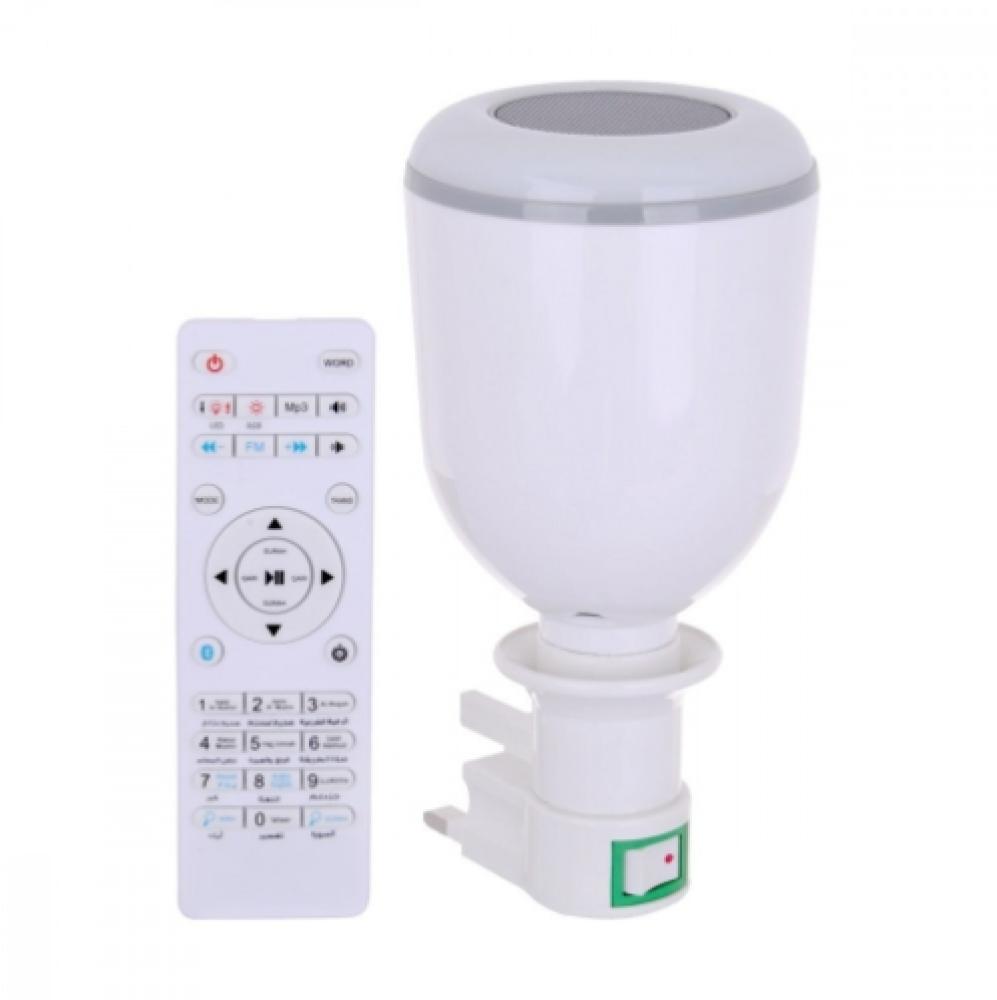 مصباح LED مع مكبر صوت لتلاوة القرآن الكريم يجمع بين إضاءة LED مريحة وتلاوات قرآنية بصوت مجموعة من القراء وبأكثر من لغة. يتيح الاتصال بالبلوتوث لبث محتوى صوتي متنوع والتحكم عن بعد.